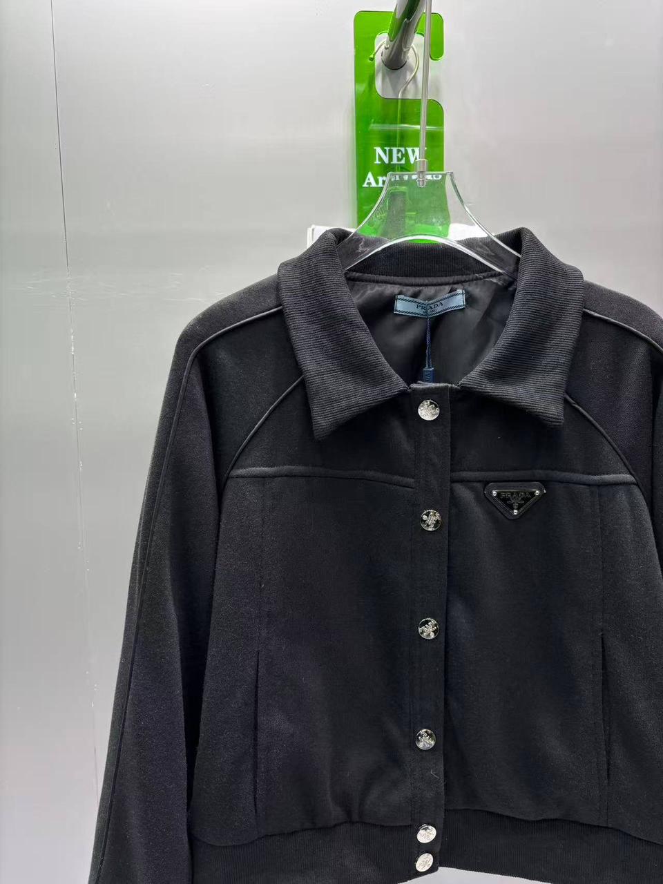 Elegant black Prada tracksuit, offering a perfect blend of comfort and luxury. Ideal for a trendy, effortless look.