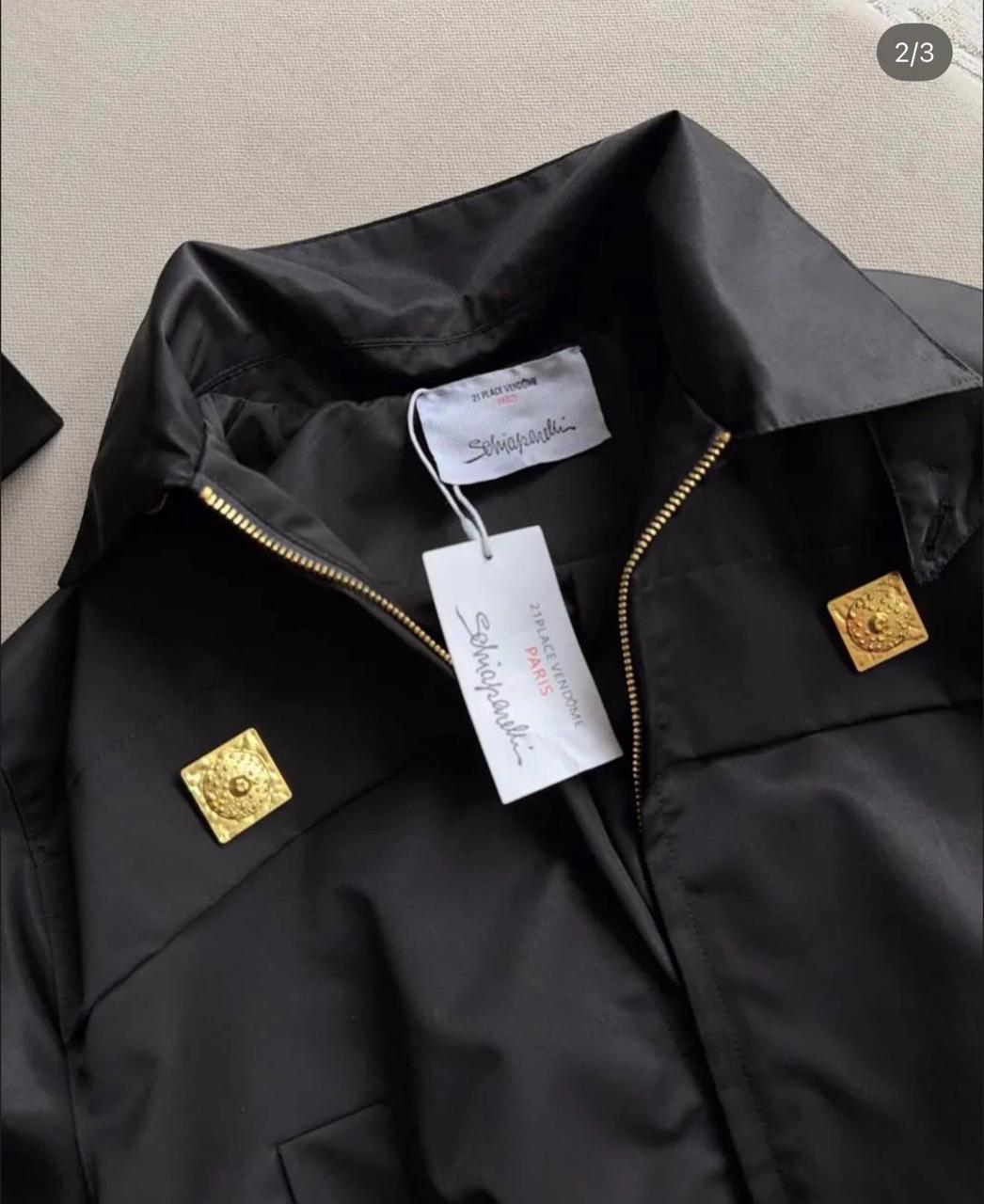Exclusive black bomber jacket with stylish gold accents .