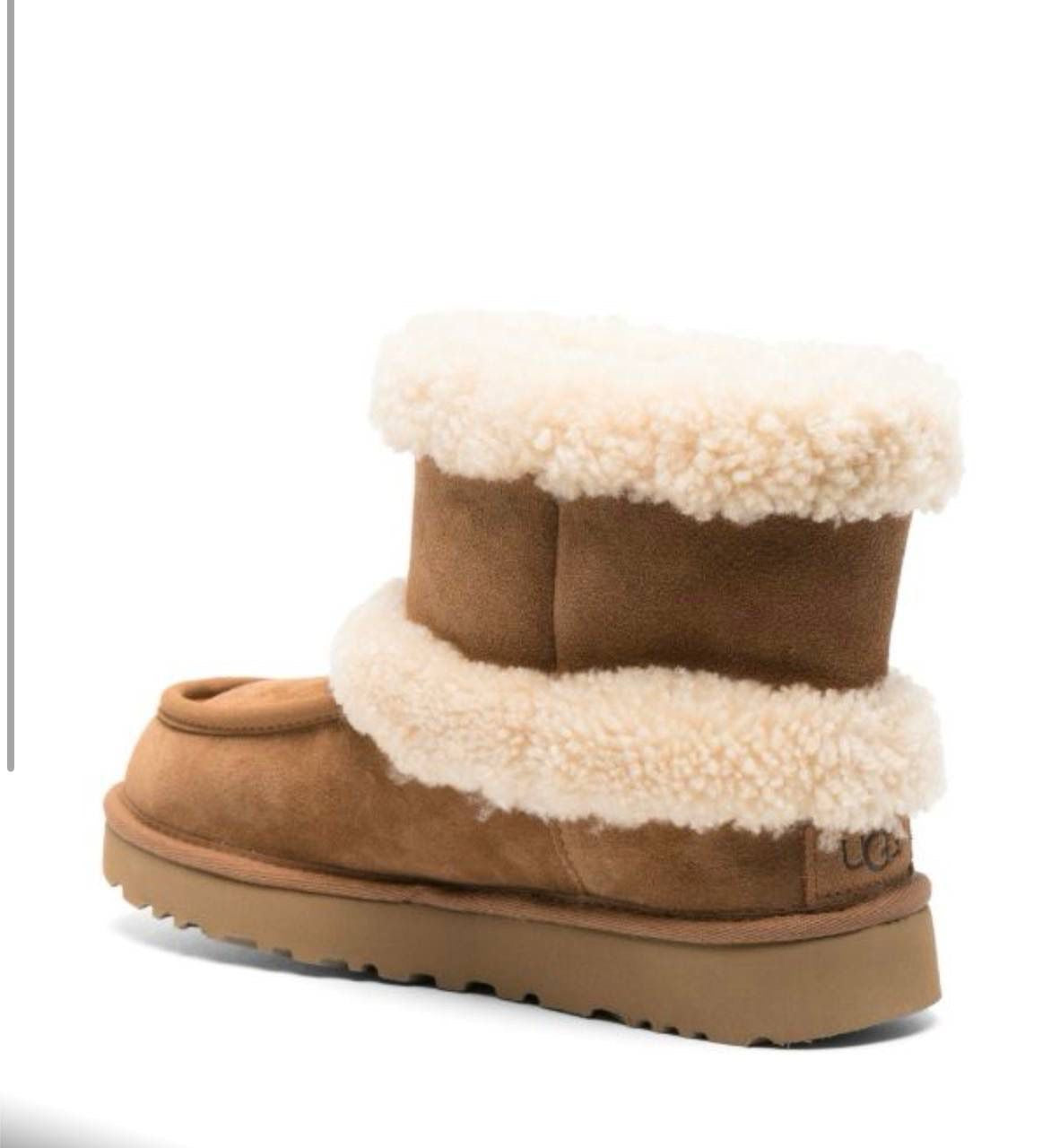 بوت Mini بتصميم عصري جريء مع ياقة فرو ناعمة وجلد شمواه مميز، مبطن بـ UGGplush™ لراحة ودفا مثاليين، مع نعل خفيف مناسب للاستخدام اليومي.
